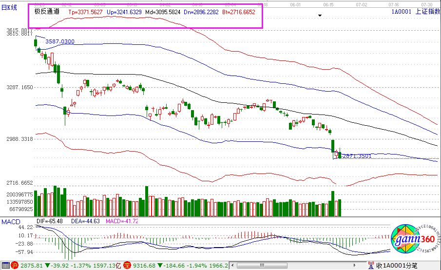 滬指跌1.37%,報收2875點;深成指跌1.94%,報收9316點;創(chuàng)業(yè)板跌2.69%,報收1521點。盤面上看,煤炭、鋼鐵、酒店餐飲等少數(shù)板塊上漲;集成電路、芯片、半導(dǎo)體、5G、網(wǎng)絡(luò)安全、人臉識別等板塊跌幅居前。全天,滬股通凈流入4.2億元,深股通凈流出12億。相應(yīng)的極反通道指標的支撐壓力提示,如下圖所示: