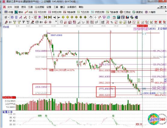 ☆依據(jù)贏家江恩理論系統(tǒng)黃金時間周期線提示:指數(shù)跌落到2700附近,是否能有效轉(zhuǎn)勢,仍需關(guān)注下個時間窗口黃金時間周期線1.5倍時間位置7月11日。