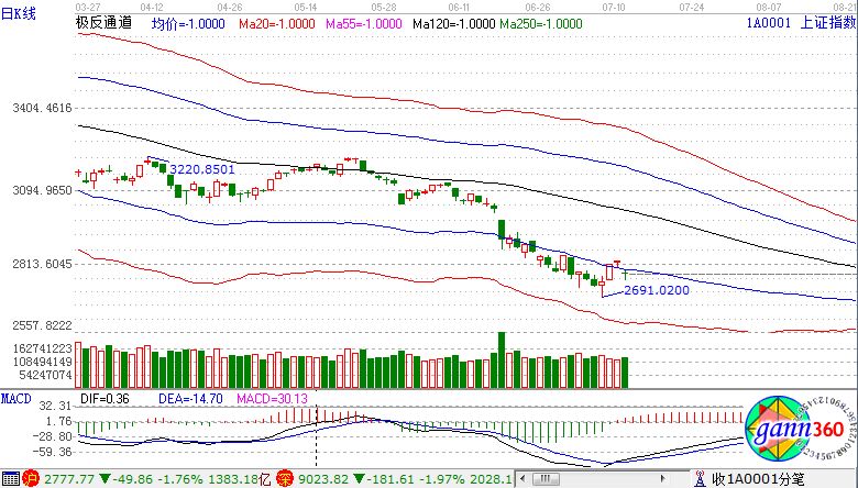 滬指跌1.76%,報2777點;深成指跌1.97%,報9023點;創(chuàng)業(yè)板指跌1.88%,報1563點。盤面上看,知識產(chǎn)權(quán)保護(hù)、網(wǎng)絡(luò)安全、大飛機(jī)、無人零售、國產(chǎn)軟件、人臉識別等板塊跌幅居前。滬股通凈流入2.6億,深股通凈流出3.3億。相應(yīng)的極反通道指標(biāo)的支撐壓力提示,如下圖所示: