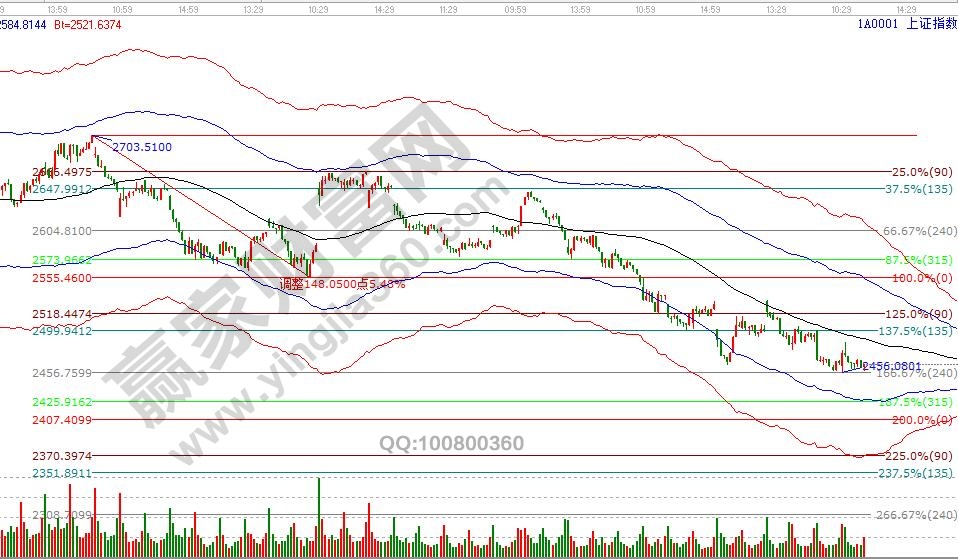 大盤日線失守黑色生命線震蕩下跌,按規(guī)則失守一線看低一線,調(diào)整空間看至藍(lán)色下軌線2400點(diǎn)附近,按歷史走勢規(guī)律當(dāng)K線下探此線確認(rèn)支撐后通常會有反彈出現(xiàn);空間點(diǎn)位上,江恩價(jià)格四方形顯示,3號大盤最低點(diǎn)同提示支撐2453僅相差2個(gè)點(diǎn),4號盤中第一支撐繼續(xù)看135度2453點(diǎn),第二支撐180度2421點(diǎn),盤中反壓位是90度2484、2496點(diǎn),激進(jìn)者可在支撐區(qū)間2453-2421開倉參與博弈,而穩(wěn)健者繼續(xù)等待江恩輪中輪提示的2391點(diǎn)和極反通道藍(lán)色下軌線2400點(diǎn)機(jī)會;時(shí)間窗口,下周一1月7日為日線時(shí)間窗。操作策略,穩(wěn)健者空倉繼續(xù)休息,等待藍(lán)色下軌參與機(jī)會,激進(jìn)者支撐不破3成倉短線快進(jìn)快出。