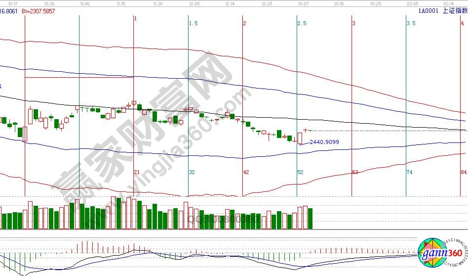 大盤日K線連續(xù)兩天窄幅震蕩,短期橫盤進入方向選擇期,目前依然處于2400點反彈周期內(nèi),9號江恩價格四方形提示,第一支撐45度2516點,第一壓力0度2547點,時間窗口,1月15日、23號為日線時間窗口。操作策略,大盤日線未收復生命線前波段休息,短線當前處于上漲周期,盤中遇壓力短線高拋,15分鐘生命線2516附近不破,短線逢低做多,本輪短線反彈底線是2478點不破,高度為日線生命線2585附近。