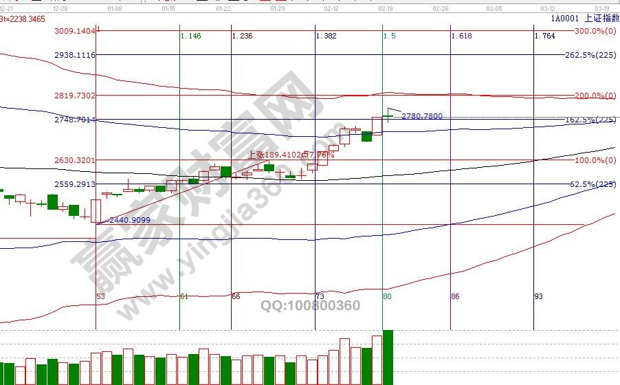 大盤在極反通道藍色上軌線與紅色外軌線構(gòu)造的超強通道內(nèi)運行,此區(qū)域代表市場熱度較強,板塊、個股均有機會輪番表現(xiàn),享受市場瘋狂的同時,但要小心瘋狂背后不斷積累的風(fēng)險,目前工具還未出現(xiàn)警示信號,按規(guī)則穩(wěn)健者關(guān)注15分鐘生命線得失,激進者關(guān)注60分鐘生命線得失;空間點位上,江恩百分比、江恩價格四方形提示,2730、2720是支撐,2765、2778為壓力,時間窗口是28號。操作策略,大盤日K線從強勢通道進入超強通道,個股波動空間增大,分批高拋藍色上軌線或紅色外軌線壓力個股,倉位切換至生命線附近有量能配合的個股,整體倉位保持在5-6成。