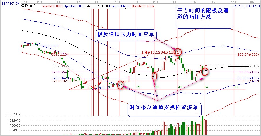 我們在來看120分周期pta。也是神奇時間64【8*8】位置突破極反通道生命線然后回踩生命線不破也是比較強有力的最佳多單的位置。